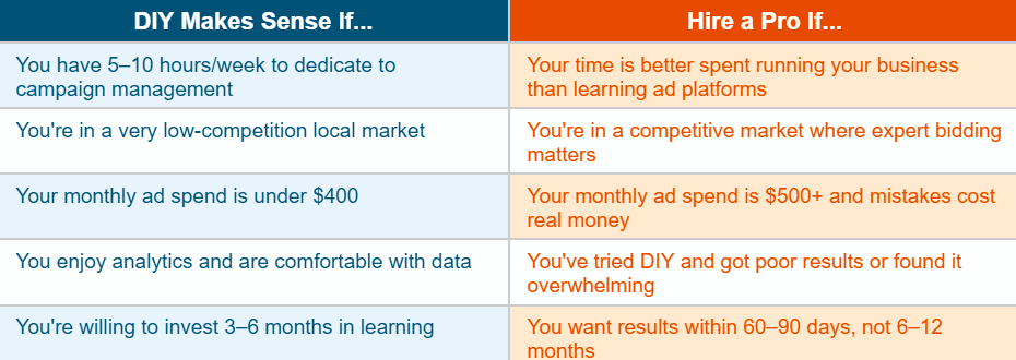 Business owners who try to manage campaigns between client calls, on weekends, or without the right training almost always underperform. Not because they're not smart enough — but because effective PPC management requires both expertise and consistent time investment.